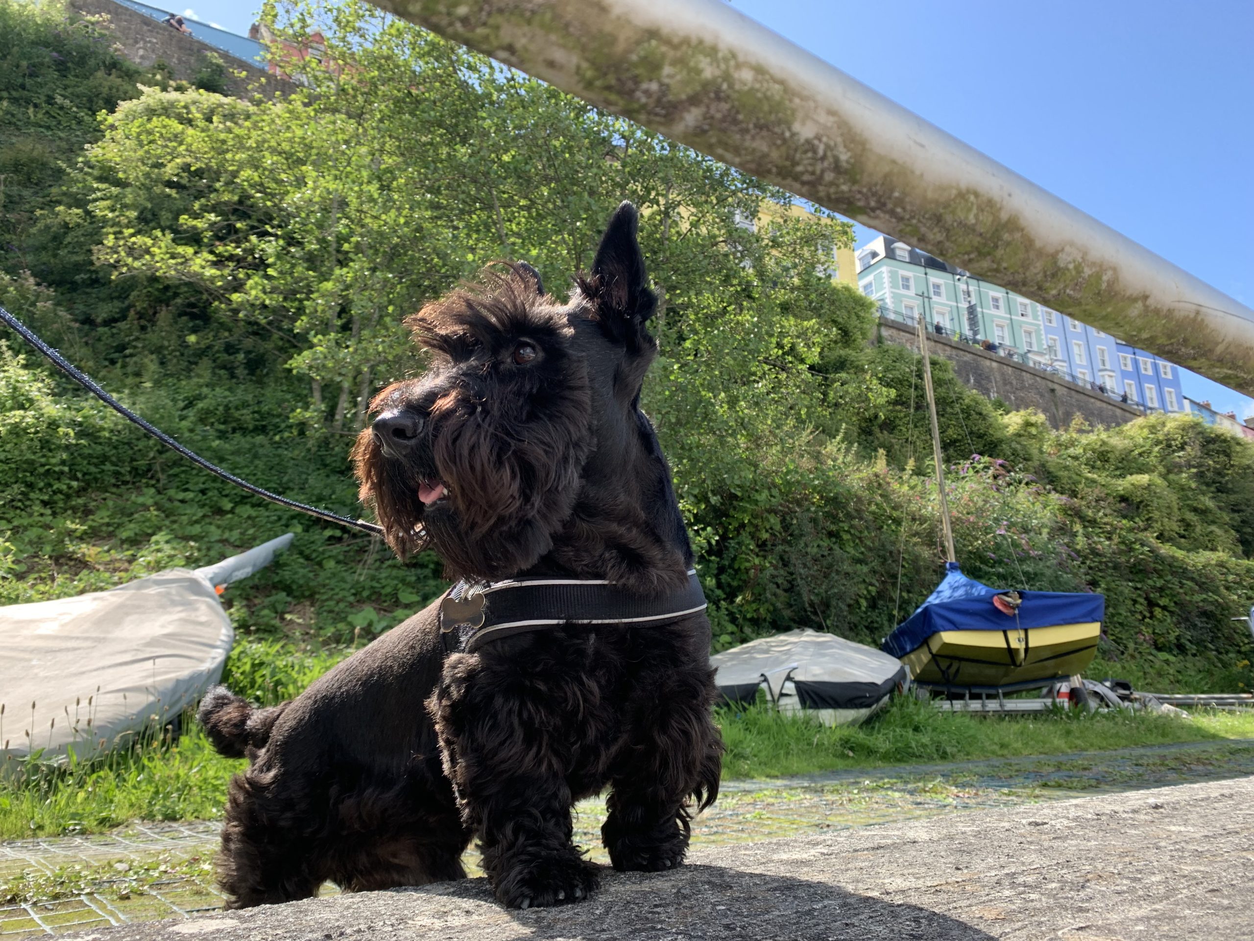 Pixie was born in Limerick and bred for the show ring. However, the show ring was not “her thing” so her owner looked for a pet home for her. Pixie travelled over the sea with an Irish greyhound courier and now keeps both Scottie boys (and me) entertained and on our toes! She is ‘small but mighty’ and gorgeous.