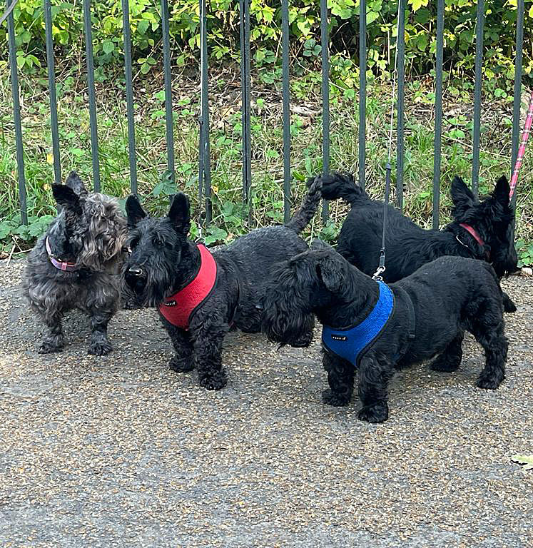An excited Lexi contributed a vocal soundtrack to the party, which rose to fever pitch if another breed of dog had the temerity to pass the assembled Scotties!